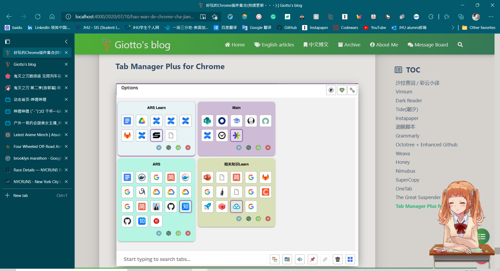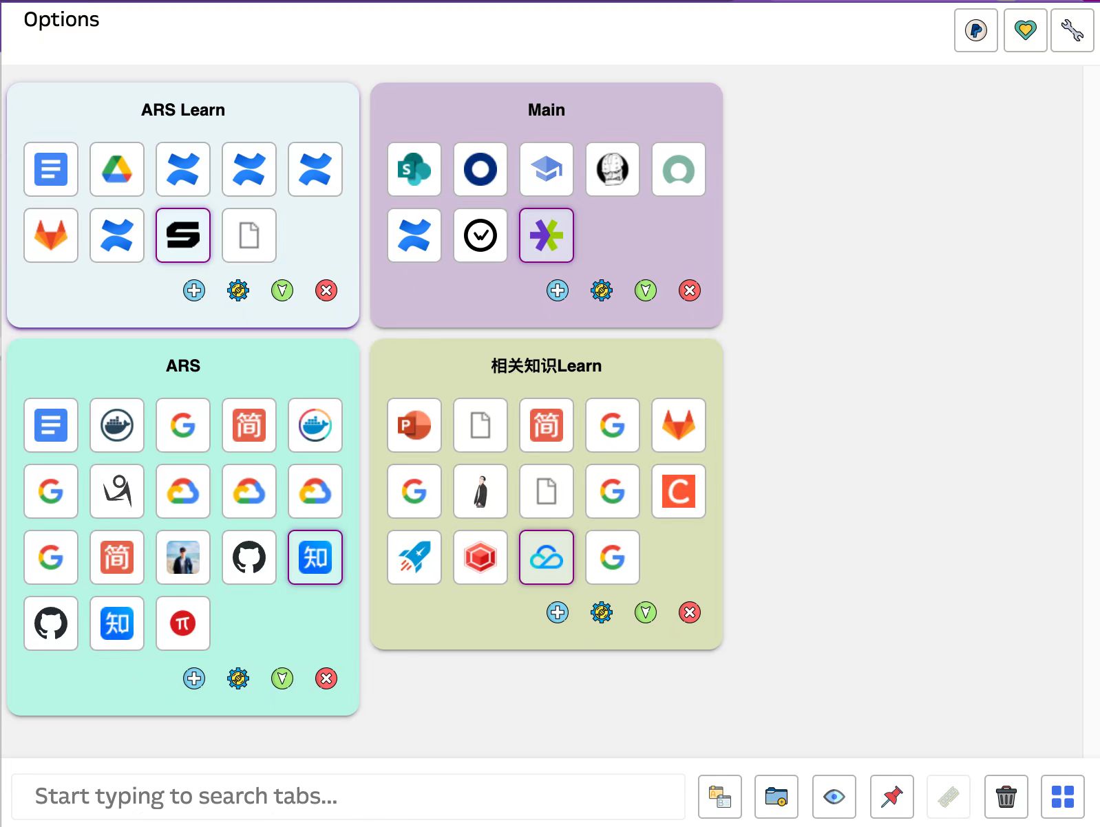 i了i了,用这个插件管理tab太爽了。可以对tab进行分类,并且给每类命名,改颜色。还有很多附加功能比如显示重复的tab,在各类tab之间直接移动,设置快捷键弹出(我设的Ctrl+j)等等。而且太可爱。