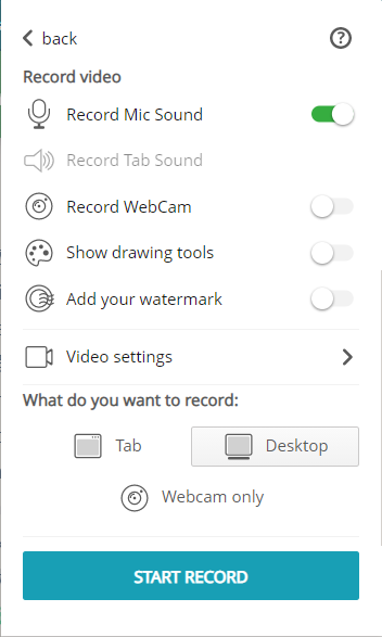 可以选择只录当前页面或所有显示画面或某个Chrome页面或某个应用或计算机摄像头。
