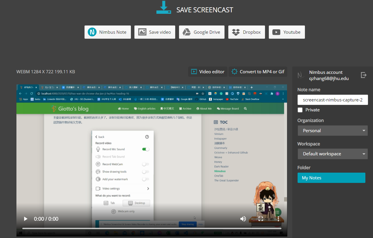 录制后可以设定默认进入编辑页面,之后可以保存或者各种分享: